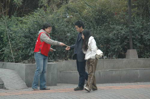 “人人为我,我为人人”,在锦江献血屋宣传的卿培才、周健,在广场上遇到几位为身患血癌的成都男孩、水木社区风云人物罗思文的募捐者,患病的学生原就读于四川大学,患病后他依然坚强、乐观。卿培才、周健当即每人为他捐助了100元,受到募捐者的赞扬。在学雷锋这个日子里,互帮互助、构建和谐社会的温暖热曲在蓉城上空荡漾!