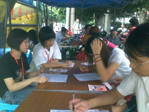 虽然当天气温有所下降,但在下午仍然十分闷热;恰逢周末春熙路人流量较大,从一点到七点的时间里三位同志基本没有时间休息。面对热情的市民,三位同志毫无怨言,始终积极、周到地为市民服务,尽力解答献血者的疑问,维护好现场秩序,使各项工作有条不紊的进行。虽然酷暑难耐,但看到那么多充满爱心的献血者,一股暖暖情意融入心房,大家倍添干劲,更加积极投身到宣传活动中。