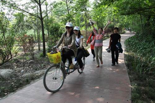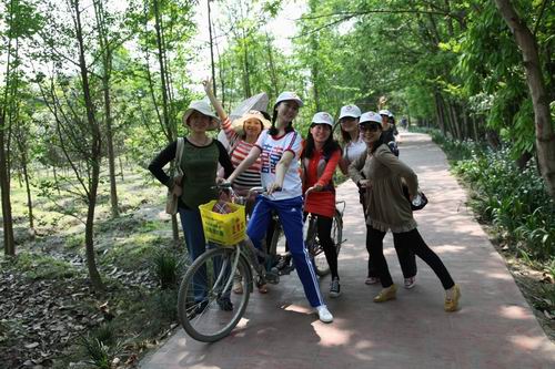 下午,大家来到温江绿道或骑车或徒步,对于长期久坐办公室的我们来说,这风景如画的绿道是再好不过的放松。踩踏单车在一望无际的乡间小道上,左边听到清澈江安河的泠泠水声,右边呼吸着草坪与树林散发的悠悠青草香。那错落在其中的农家小院,让人不禁想起“又见炊烟升起……想问炊烟阵阵、你要去那里?”的歌声。来来往往、欢声笑语的游人从身边穿过,大家徜徉在其中没法不快乐。有的说,这里简直就是人间仙境,有的说,这是最轻灵的意境……年轻人说Are you ready?我说Let's go!于是,大家骑车一路奔向明媚的阳光!