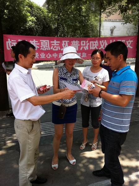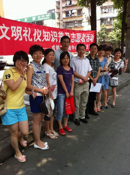 文明礼仪是中华民族的传统美德,是建设和谐环境的重要内容。正值成都市迎来卫生城市测评之际,为了进一步宣讲文明礼仪,宣传文明知识,2012年7月13日,中心业务二支部党员在支部书记及支委带领下,在青春岛社区的人行道开展了文明礼仪知识普及志愿者服务活动。