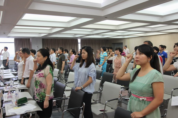活动开场,中心副主任傅雪梅同志首先介绍了开展道德讲堂的背景和意义,简明深刻。在主持人康建勋和阎灵均的引导下,全体同志起立合唱了一首《公民道德歌》,在优美的旋律中拉开了传递诚信正能量的序幕。