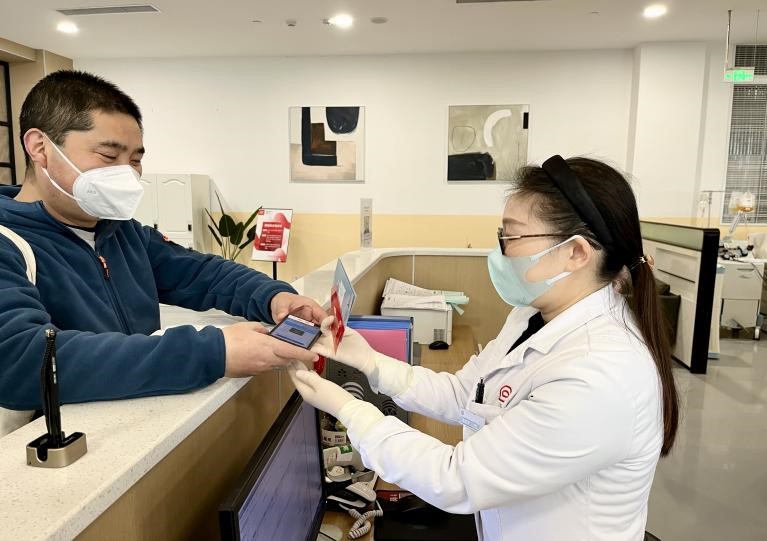 在大面积的新冠病毒感染的情况下,中心本部没有停采一天。为了方便献血者错峰献血,采集一党支部党员主动延长了工作时间。12月31日晚上8点,夜幕降临,血液采集一科仍然灯火通明。在许多人还沉浸在跨年的热烈气氛中时,采集岗护士黄兴丽刚刚送走了今日最后一名献血者,和同事做好收尾工作后,又开始为第二天的工作做准备。结束长达12个小时的工作后,她才坐下来拿出手机拨通了家人的电话。她有一个上高三的儿子和一个年仅6岁的女儿,儿子最近也因为感染新冠病毒高烧不退,但她说,“虽然很愧疚不能陪伴和照顾孩子,但自己作为一名老党员,现在正是组织需要我的时刻,更要挺身而出,我们多采一袋血液,就为亟待用血的患者多送去一份希望。”