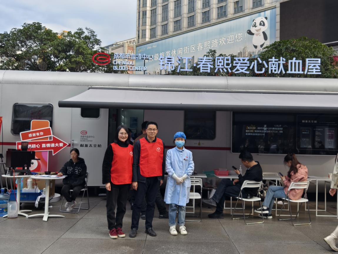 支部书记顾小波和组织委员邓岚主动请缨,参加春节期间志愿服务活动。高新环球、锦江春熙、暑袜中街……几个献血屋都留下了他们热情又忙碌的身影。像这样的互帮互助也在这座城市大大小小的献血点持续接力。大年初一初二李瑾、大年初七闫小立,以及几位新员工,他们都在自己的岗位上洋溢着青春的热情,传递着这个城市的热血精神。