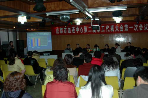 成都市血液中心第二届职工代表大会第一次会议于2006年1月18日下午在中心六楼会议室召开。中心36名职工代表出席了会议,19名中层干部列席了会议。