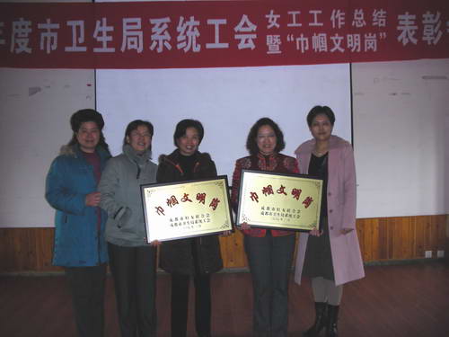 3月9日,市卫生局系统工会在三圣乡召开了“2006年女工工作总结暨巾帼文明岗表彰会”。中心储血发血室、成分室荣获市妇女联合会和局系统工会联合评选的“巾帼文明岗”称号。