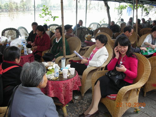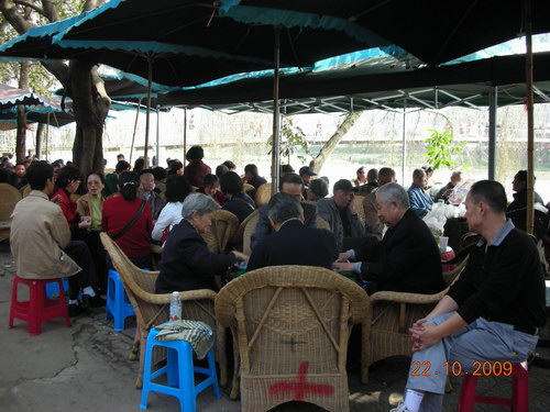 到达黄龙溪古镇后,老同志们就迫不及待沿着黄龙溪古楼两边的小径,顺流而下观赏起来。小溪两旁古楼肃立,灯笼高挂,古老的碾磨在溪水的冲力下不停的转动着。在小溪上每隔几米远都搭建着各种小桥:红沙石桥、木桥、拱桥、索桥等等,供人们观赏和穿梭;庭台阁楼、小桥流水,琴声悠悠、金龙腾舞、人水融合,令所有参观的老同志心潮澎湃、留恋忘怀。老同志们高高兴兴欢聚一堂,三五一群自由组合,游古镇、打牌、照像等,玩得十分开心。