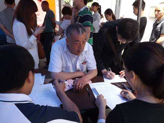 我跟随外采8组准点到达北新街采血点,那里高校爱心志愿者服务队的同学和爱心大使杨秀伟、熊德金还有很多准备参加无偿献血的志愿者已经在采血屋旁等候了,我们火速开工,采血工作井然有序进行。