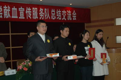 成都市无偿献血志愿者服务队自2004年成立以来,已由当初的15支发展到28支,由300多人发展到近2000人,他们活跃在流动采血车旁、社区、公交车上、车站、农村、学校、街道,他们不计报酬,无私奉献自己的休息时间,为献血者服务、向公民宣传无偿献血的科普知识,招募自愿无偿献血者,正是在他们的努力和感召下,越来越多的公民加入到无偿献血的队伍中来,成都市连续两年取得的临床用血100%来自志愿无偿献血的显著成绩,都与他们的付出分不开。爱心大使分队、西南民族大学分队等在会上作了重点大会交流。大会还向服务工时100小时以上的志愿者颁发了荣誉证书。