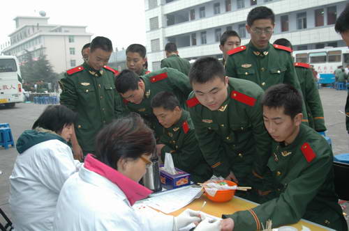 为了使成都市人民过好春节,四川武警指挥学院、四川省武警总队直属支队官兵积极参加无偿献血,为成都市人民献上了一份温馨的节日礼物。