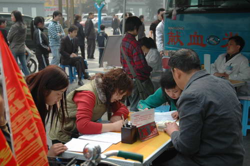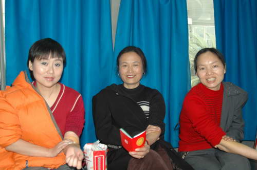今年50岁的曾光凤是位教师,非常健谈,她说献血是利国利民的好事,今天专程到天府广场献血庆祝节日,这已是她第三次献血了。陈霞37岁,容貌端庄秀丽,从事商务工作,献血5次,她说“3・8”节献血,是送给自己的一份特殊礼物。还有年青、充满活力的羌族姑娘徐鹤梦今年25岁,是第一次献血,她认为献血是一件很幸福的事。
