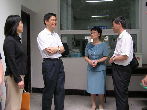 5月25日上午曾万明副市长在市卫生局局长周光荣、副局长刘培毅的陪同下来到成都市血液中心进行视察,并就我市无偿献血工作进行了专题调研。曾市长深入到各业务科室查看了供血工作流程,看望了献血者和工作人员,听取了市血液中心主任王乃红关于我市自愿无偿献血工作、献血屋建设进展,以及血液中心管理工作等情况汇报。