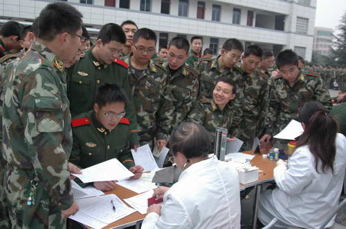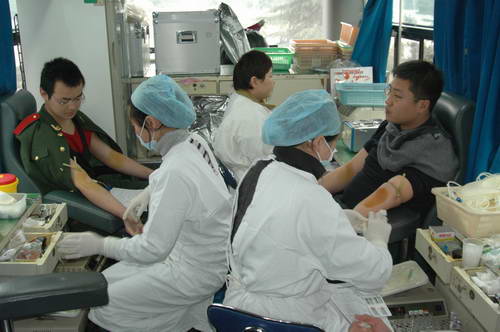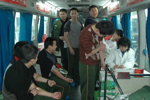 近日来,因天气寒冷,献血人数减少,临床用血增加,成都市A型、O型血出现偏型。当武警成都指挥学院领导知道此事后,非常重视,积极号召学院官兵伸出援助之手,动员大家积极献血。1月23日下午2:30,血液中心的四台采血车开进了指挥学院,学院一大队政委张明建率先献血,在他的带领下官兵们献血十分踊跃,场面让人感动,经体检合格,共有512位官兵献出了宝贵的血液。