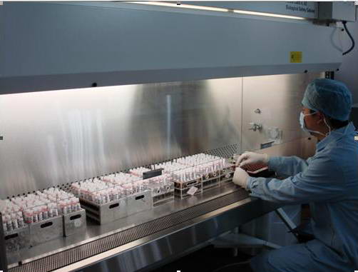 下图为检验科同志正在使用生物安全柜进行检验前的准备工作