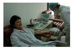 图为中心主任王乃红献血