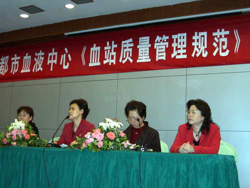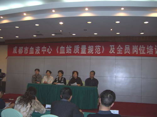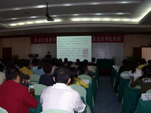 2007年4月23日-4月27日,成都市血液中心《血站质量管理规范》及全员岗位培训在成都安全血液培训中心分两批举行,成都血液中心、彭州采血队的全体职工、阿坝州中心血站、甘孜州中心血站和眉山血站的部分代表共计253人参加了培训学习。