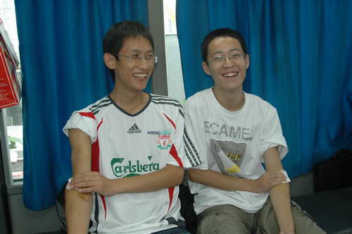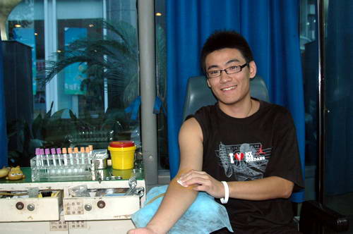 两位大学生为参加无偿献血感到自豪