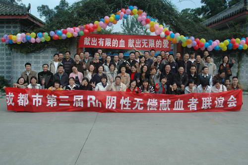 2007秋风送爽、菊花盛开。金秋十月下旬的一个周末,成都市血液中心在鲜花盛开的三圣乡一度假村召开了第三届Rh(-)献血者联谊会,来自我市的80多名献血者兴高采烈的参加了联谊聚会。血液中心主任王乃红、党委书记尹丹妮、副主任杨群身和业务科、公民献血科等工作人员参加了联谊聚会。