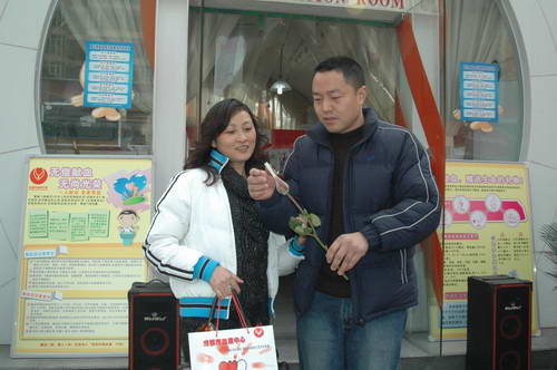 据统计,情人节全市共有382位市民献血,其中63对是情侣,累积献血118200毫升。成都市血液中心在献血屋和流动采血点特别准备了情人节的礼物,将充满祝福的玫瑰花和巧克力等精美礼品送给了一对对情侣。
