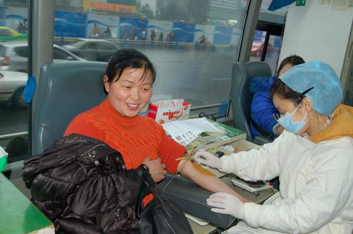 8日一大早,在市区“城市之心”的献血车上已经挤满了人,而且大都是女性献血者。来自四川全鑫实业有限公司的林宗凤和邓芳介绍说,她们都是公司组织,一大早就包车从龙泉驿过来的,一共来了30多名同志,为的就是以无偿献血的方式过一个有意义的三•八妇女节,其中几位男同志是被他们的热情感染后自愿参加无偿献血。邓芳笑着说,“献血就是献给我们三•八妇女节最好的礼物,我们公司已经确定成为成都市血液中心的固定献血团队,以后每年的三•八妇女节都组织员工来献血,过有意义的妇女节!”在现场,还有很多是自发来献血的女性朋友。工作人员介绍说,每年的三•八妇女节都有很多女性朋友来献血,她们是以献爱心的方式来给自己过一个有意义的节日。