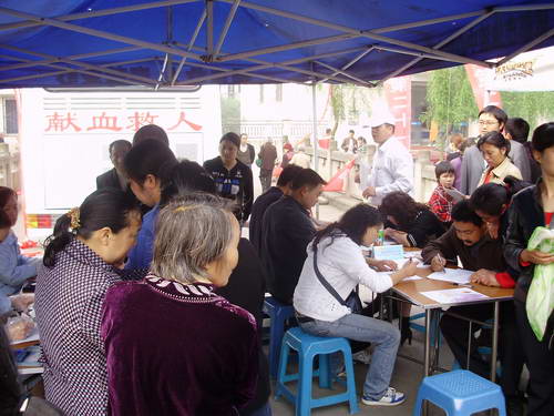 当天,与以往不同的是,采血车停放在场镇的主要大街旁,马家镇分管卫生的魏副镇长,文卫办杨主任与区献血办工作人员以及志愿者6人一起向过往的农民朋友宣传《中华人民共和国献血法》和血液常识,发放献血资料。农民朋友们拿到分发的宣传单后纷纷奔走相告,一起踊跃来到献血现场。争填献血申请表参加献血,有的农民没有带身份证不能献血,马上跑了10多里路回到家中去取,这充分体现了农民朋友对公益事业的支持。在此次献血中一位马家镇石坝村的54岁的农民张顺良一次无偿献血400毫升;还有青白江区弥牟镇前来赶场刚年满18岁的廖传明一次无偿献血300毫升。在成都市创建国家文明城市的今天有这样一群热爱公益事业、积极参加无偿献血的农民朋友,他们乐于奉献的精神值得我们每一个人学习。此次献血活动设置展板5个,共发放宣传资料3000余份,接受咨询200人次,有106人次自愿参加无偿献血,宣传、无偿献血活动效果良好。