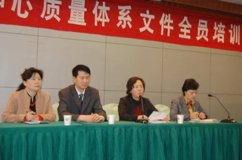 2006年卫生部颁布“一个办法、两个规范”后,中心先后两次组织了全员培训,并组织力量对体系文件进行修改,将文件与“规范”高度整合。今年年初的修改,中心专门成立了以主任助理傅雪梅为组长的修改组,组织了各科室主任、内审员和“规范”培训骨干教员为主要力量,并发动职工全员参与,修改工作历时2个月,于4月初全部完成。为了更好地运行新版文件,中心举行了此次质量体系全员培训。