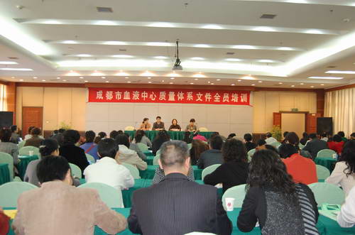 2008年4月15日、4月21日,成都市血液中心分两批举行了针对中心质量体系文件的全员培训,中心全体职工及彭州采血队共229人参加了此次培训。