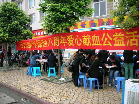 在新华人寿保险股份有限公司四川分公司成立8周年之际(以下简称四川新华),四川新华为回馈社会、奉献爱心,倡议员工奉献爱心,献血助他人,以特别的方式来庆祝公司8周年纪念日。
