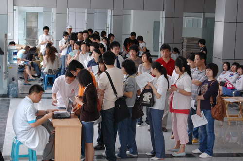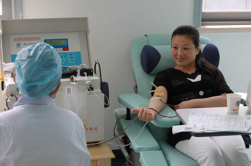 今日上午9:00中国移动成都分公司共青团组织团员100多人来到成都市血液中心踊跃捐献血浆,为抗震救灾尽一份心意,献一份爱心。
