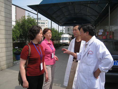 在彭州采血队,大大小小的药品已堆满工作楼前的空地,工作人员紧张、有序的开展着工作。尹丹妮书记和唐莉副主任上前亲切的慰问了在一线的工作人员,将牛奶和矿泉水等物资送到了他们手上,并嘱咐他们一定要好好保重身体。负责人倪斌介绍说,现在送往彭州的赈灾药品全部存放在血站,由他们统一调配送往彭州的医院和卫生院,由于工作任务繁重,采血队的很多工作人员已经连续多日坚守岗位,没有回过家。