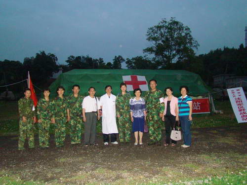 下午,王主任一行不顾路途颠簸的劳累,卸下冰箱后,又专程来到德阳中心血站,该血站同样受损严重,职工在不能保证正常休息的情况下,仍然坚持开展采供血业务,几位站领导从灾情发生后,就没回过家,没休息过,超负荷的劳累,没有压跨他们,更坚定了他们的意志,其精神可歌可泣。继后,在德阳血站同行的带领之下,王主任一行深入绵竹、汉旺重灾区,其房屋垮踏、城市的破坏程度,超出想象,满目疮痍,遍体鳞伤,唯一挺立在东方汽轮机厂外的一座钟楼,时间定格在“2点28分”,留下的是历史的见证。夜幕降临,血液中心一行人又来到“沈阳军区德阳野战血站”,了解他们储血供血情况,关心他们来到四川的生活情况,对子弟兵大无畏的援助表示深深地感谢。