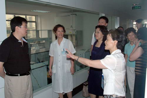 7月8日上午,卫生部医政司副司长周军在省卫生厅医政处副处长黄晓林、市卫生局刘培毅副局长、干部处处长秦与闻的陪同下,来到血液中心视察。