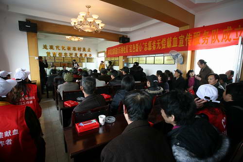血液中心党委书记尹丹妮讲话时表示:2007年至今一年时间里,从起初人们对献血有疑虑、担心健康状况,到今天首支农村无偿献血宣传志愿者队伍建立,我们看到了真正的社会主义新农村,更看到了无偿献血的光明发展前途!”志愿者代表符建秋发言说:“我献血,我光荣!”三年以来,符建秋累计献血两万多毫升,并荣获国家无偿献血促进奖铜牌。紧接着,尹丹妮书记、秦少宣书记授旗予“红色爱心”志愿者队;刘飞队长授牌。志愿者们面带笑容,情绪激昂,纷纷留下格言。活动在精彩的文艺表演及融洽欢欣的气氛中取得完满成功。