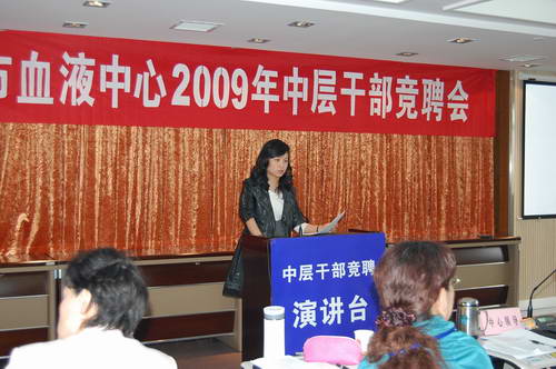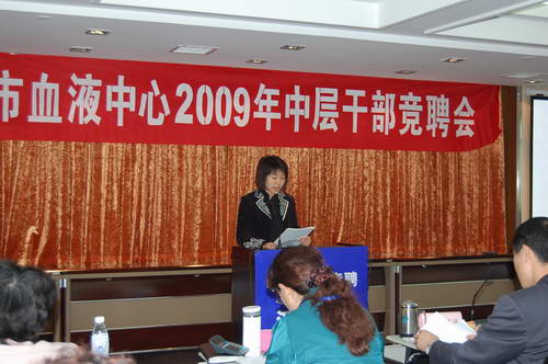 在竞聘演讲结束时,王乃红主任作了总结发言,她充分肯定了各位竞聘选手的积极进取精神,竞聘者充分展示了自己的才能,表达了大家对血液中心发展的关心,增进了相互沟通和了解。通过此次竞聘,使我们真正看到了血液中心的希望、血液中心的腾飞。她同时强调,为了实现输血事业发展,无论竞聘结果如何,都要把业务工作和团队建设放在首位,年轻同志要虚心向老同志学习,尊重老同志;老同志要起好传帮带作用,毫无保留的把自己的宝贵经验无私的传授给年轻的同志,认真做好工作交接,共同推动血液中心工作再迈上一个新台阶。