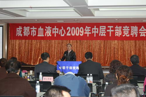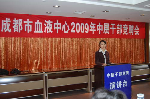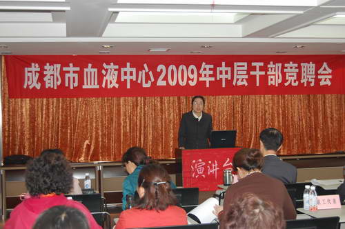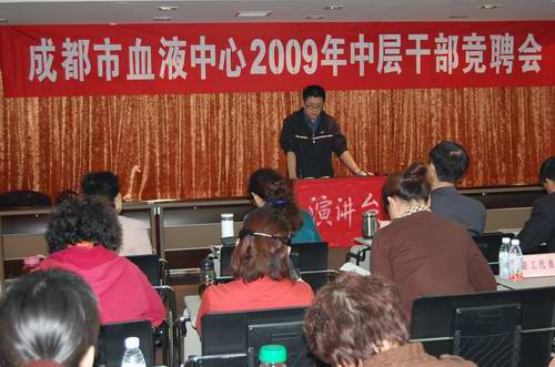人间四月天,有着享不尽的阳光、和风和细雨,有着看不尽的人间春色。但是,浓郁十足的春色,却无法抵挡2009年4月8日在中心六楼会议室召开的“血液中心2009年度中层干部竞聘上岗会”演讲的多彩,血液中心广大职工的振奋精神和每个即将参加竞聘的同志心中的激情和自信。因为,在同一条起跑线上,充满着职工无限的信任与希望,也充满着竞聘者的自信和肩负的责任。