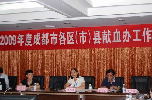 6月2日,成都市献血领导小组办公室召开了2009年各区(市)县献血办工作会议。会议由成都市献血办副主任、市血液中心主任王乃红同志主持,全市二十个区(市)县献血办负责人及相关工作人员40余人参加了会议。