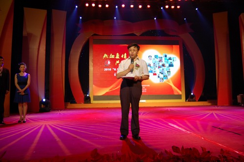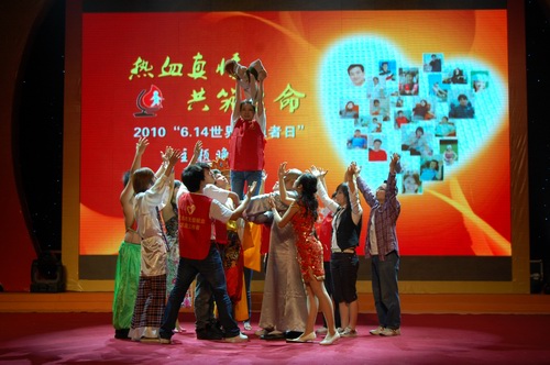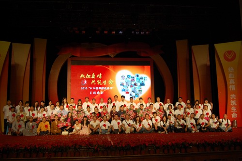 在一群志愿者富有感情的诗朗诵中,晚会拉开了序幕。2010年成都市无偿献血爱心大使、成都市电视台著名节目主持人张毅、李丹、袁莉合着他们拍摄的无偿献血公益广告走上了舞台,担任这台晚会的主持。傅勇林副市长在一片热烈的掌声中上台,代表市委、市政府、市献血领导小组,向全市为拯救生命自愿献出鲜血的无偿献血者致以节日的问候,向为我市无偿献血事业作出积极贡献的志愿者、社会爱心人士以及辛勤工作在第一线的血液工作者表示衷心感谢,并号召更多市民加入到无偿献血队伍中来,继续传递爱的火炬,为人间洒满爱的光辉。整台晚会以诗歌、纪录片等形式回顾了成都市无偿献血事业走过的历程,通过原创歌曲、舞蹈、朗诵等形式,充分展现了无偿献血个人和团队的风采。其中由志愿者创作的感谢无偿献血者的公益主题歌《红色的使命》和由成都市血液中心原创的展现血液工作者的诗歌朗诵更是将晚会推向了高潮,赢得了阵阵掌声。在晚会中,主持人还向大家介绍了成都市15位杰出的无偿献血者以及无偿献血先进团队的先进事迹,并请他们上台接收了献花。晚会在《欢庆》的大型舞蹈中落下了帷幕,无偿献血者、志愿者、血液工作者们齐聚一堂,让热血真情,共筑生命。