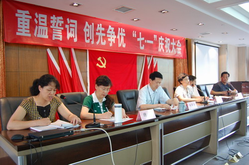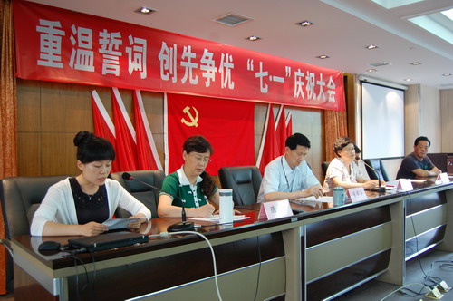 2010年7月1日下午14时,血液中心在六楼大会议室隆重举行了“重温誓词 创先争优 ‘七一’庆祝大会”,中心党员、职工共计105人参加了会议。