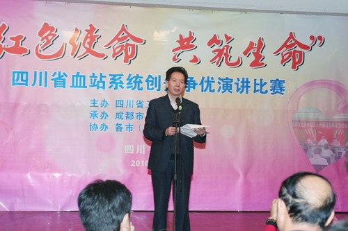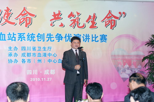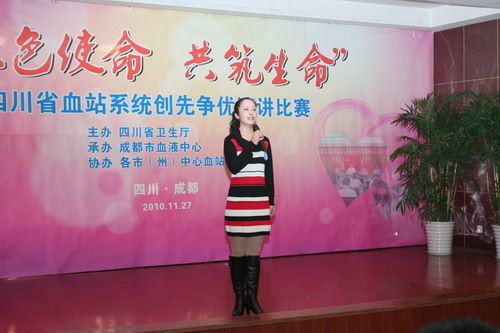 为深入贯彻落实《中央组织部、中央宣传部关于在党的基层组织和党员中深入开展创先争优活动的意见》及5月26日四川省医药卫生系统创先争优活动电视电话会议精神,由四川省卫生厅主办,成都市血液中心承办、各市(州)血站协办的全省血站系统 “红色使命,共筑生命”为主题的创先争优演讲比赛于11月27日在成都隆重举行。