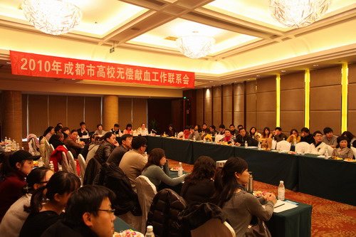 12月27日,成都市血液中心召开了2010年成都市高校无偿献血工作联系会,团省委学校部部长李建、团市委学校部部长刘兆容和志工部副部长颜明等团省、市委领导出席了会议,四川大学、西南财经大学、成都信息工程学院等成都市32所高校团委书记和相关老师参加了会议,中心全体领导和相关部门工作人员参加了会议。