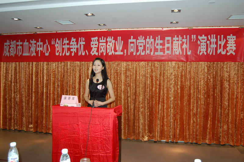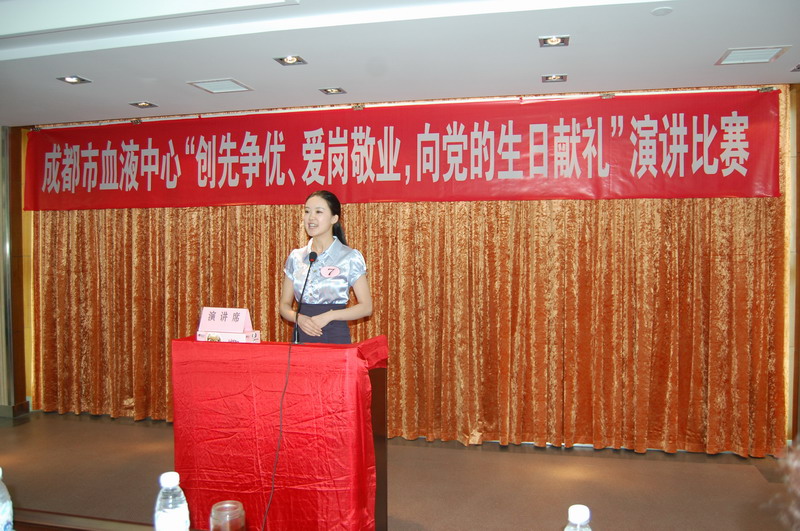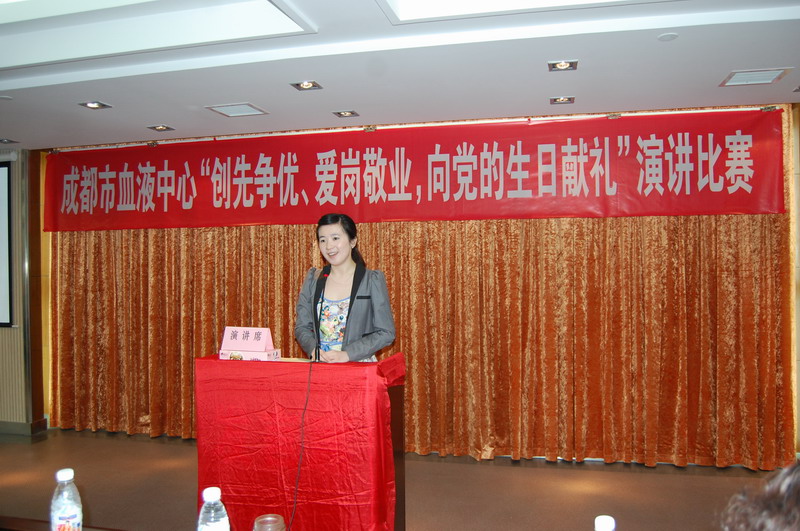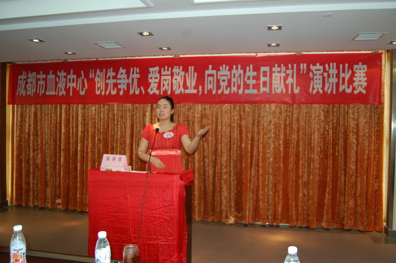 为隆重纪念中国共产党建党90周年,成都市血液中心于2011年6月21日下午3点在六楼大会议室举行了一场激情昂扬、声情并茂、催人奋进的演讲比赛。来自五个党支部的13名党员及群众、共青团员参加了比赛。同时,此次比赛也为选拔优秀选手参加成都市卫生局举办的“创先争优、爱岗敬业,向党的生日献礼”演讲复赛。