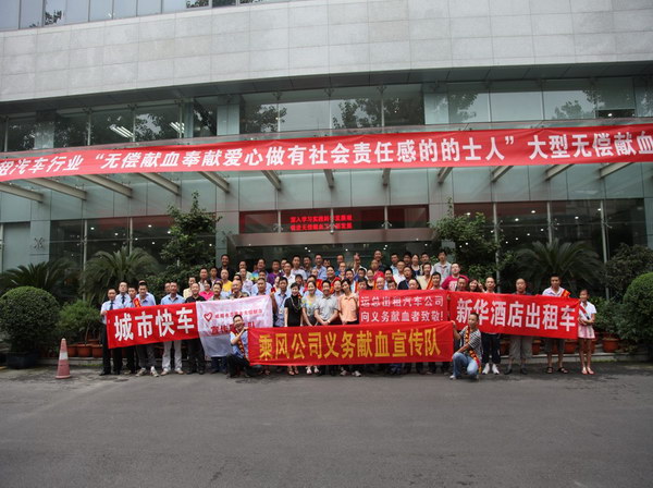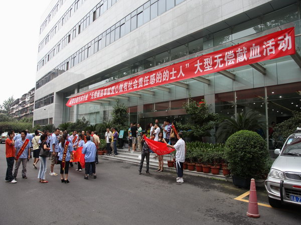 为充分展现成都市出租汽车行业无私奉献、积极向上的精神风貌,2011年8月3日,经成都市出租汽车协会组织发起、在成都市血液中心的大力配合下,成都市出租汽车无偿献血志愿宣传服务队的100多名队员在协会执行副会长张秉渝、办公室副主任熊景的带领下,来到血液中心开展“无偿献血奉献爱心、做有社会责任感的的士人”大型无偿献血宣传活动,这是继去年5月成都市出租汽车无偿献血志愿宣传服务队成立后的第三次团体无偿献血活动。