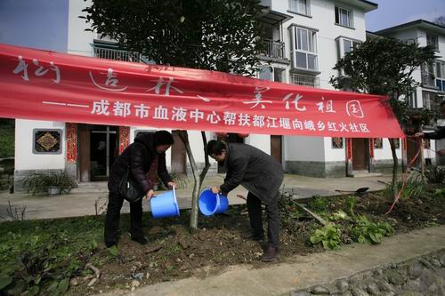 中心为都江堰市向峨乡红火社区植树及捐赠书籍
