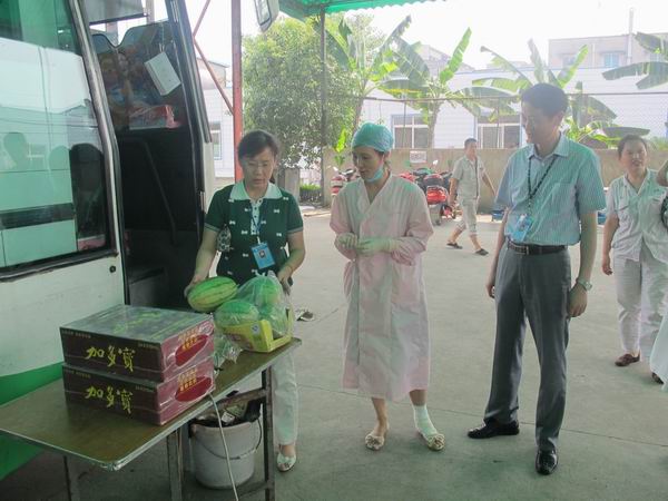 8月10日―15日,中心党委书记杨群身、工会主席唐莉、副主席吴丽华分别带队来到采血车现场,看望和慰问战斗在采血一线的医生、护士及工作人员,给他们送去解暑的饮料和西瓜,同时不断叮嘱外采队的同志们一定要多喝水,注意防暑降温,表达了中心领导的一片关爱之情。