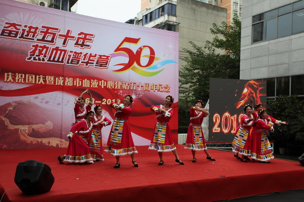 最后,庆祝活动的重头戏--以支部所辖科室为片区的文艺表演开始了,首先业务一支部的歌伴舞《爱在天地间》在欢快的音乐声中热烈登场,她们载歌载舞,表达了业务一线职工的美好祝福;随后离退休支部的舞蹈《最美的歌儿唱给妈妈听》上场,她们穿着鲜艳的少数民族服装表达了老一辈血站人的情怀。其他支部的节目同样精彩,行政支部的诗朗诵《风雨砥砺五十载、步履坚实再出发》,他们声情并茂、抑扬顿挫的朗诵反映了中心发展的艰辛和职工们对未来发展的憧憬和信心;彭州采血队以一曲《明天会更好》表达了自己的心愿,业务三支部表演的反映“5.12”地震时采血屋前感人的场景,医务人员连续奋战,热心市民踊跃献血,令人回味、难忘;年轻人的劲歌劲舞展现了新一代职工的风采和活力。最后业务二支部的大合唱《红色使命》把庆祝活动推向高潮,台下职工也齐声高唱,大家共同表达血液中心职工的心声和对未来前景的美好祝愿!庆祝活动圆满结束。