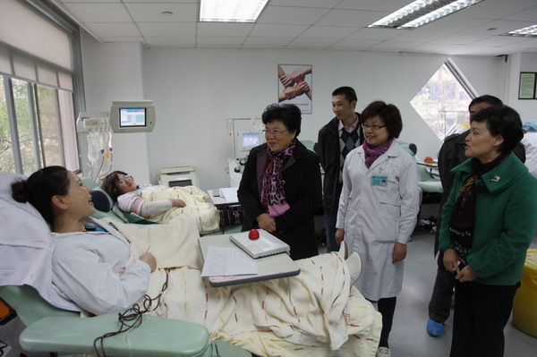 11月27日上午,在四川省卫生厅医政处处长焦云智、副处长刘成,成都市卫生局局长杨小广、副局长刘培毅、医政处处长李祖俊等陪同下,省卫生厅副厅长张祖芸到成都市血液中心调研血液工作。