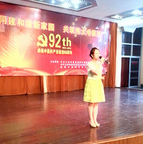 2013年6月26日上午,中心参加了倪家桥社区“同建和谐新家园、共筑伟大中国梦”七•一庆祝活动,作为中心的表演代表,机采室的党员涂丽梅同志声情并茂地演唱了民族歌曲《小背篓》,歌声悠扬婉转、嗓音飘逸空灵,台下观众掌声雷鸣,与社区居民们共同庆祝中国共产党建党九十二周年。