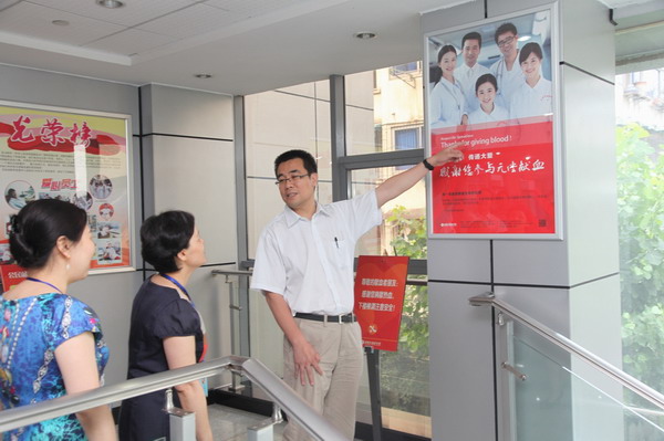 在小会议室,中心王主任向高处长一行汇报、介绍了中心概况、成都市无偿献血事业发展和中心业务开展情况,特别介绍了在“5.12”汶川地震、“4.20”芦山地震中,中心开展应急采供血、保证伤病员救治,同时适时控制、引导献血开展,避免血液浪费,取得了较好的效果。高处长听取汇报后对成都市无偿献血和中心业务发展情况给予肯定,同时了解了成都市在无偿献血用血退费方面的政策、管理,中心业务工作开展的一些具体情况。他提出,在今后的无偿献血工作中应该强化政府的职能,倡导公职人员献血,中心要创新开展无偿献血,把一些细节工作做得更好。