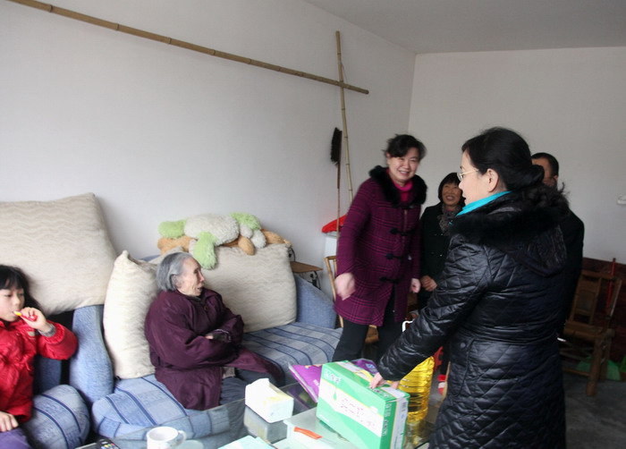 经过积极采购,1月29日上午,慰问小组首先慰问了中心省劳模蒲建国、长期生病的4名职工,向他们送上了慰问金。与中心保卫科一起慰问了在中心工作的蓉新公司农民工保安8人,送上了米、油等,感谢他们为中心业务工作开展提供了安全的环境。随后,在社区干部带领下,慰问小组来到倪家桥、三瓦窑社区4户贫困人员家里看望,他们当中有精神残疾病人、高龄空巢老人,为他们送上了米油、牛奶、汤圆等,祝他们节日快乐、身体健康。