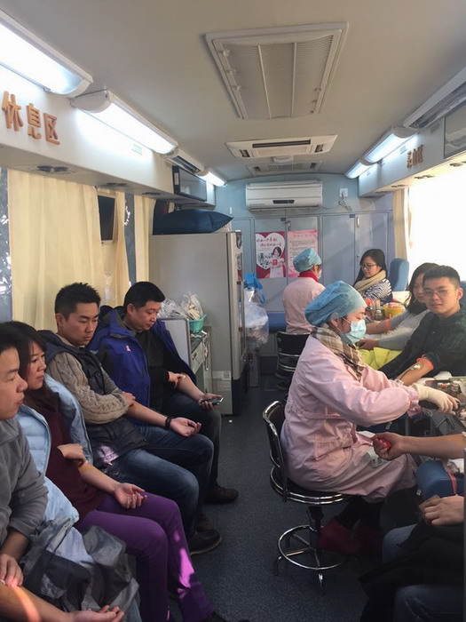 上午9时,在双林路99号成都广播电视台门口的献血车旁,来自成都市委宣传部的工作人员以及成都广播电视台一线的记者们陆续踏上了“爱心之旅”。 在献血车上,很多一线记者身边还放着采访设备,献完爱心的他们就要立刻奔赴各个地点去完成一天的采访工作了。献血,成为他们今天有爱行动的开始。
