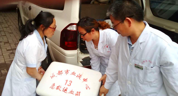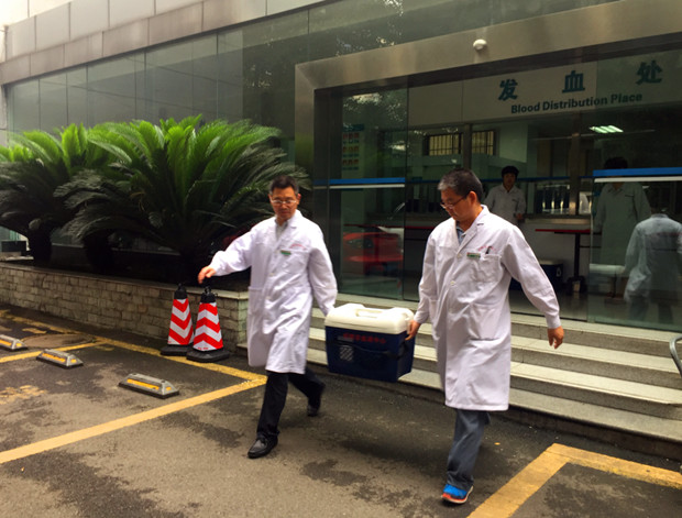 我中心立即与阿坝州中心血站联系,了解了当地血液库存情况。为尽快补充茂县当地血液库存,做好抢救用血需要,下午14点35分,中心副主任李文带队出发将支援的应急保障血液(100单位红细胞悬液、4000毫升冰冻血浆)送往阿坝,于16点20分顺利安全送抵阿坝州中心血站汶川储血点。